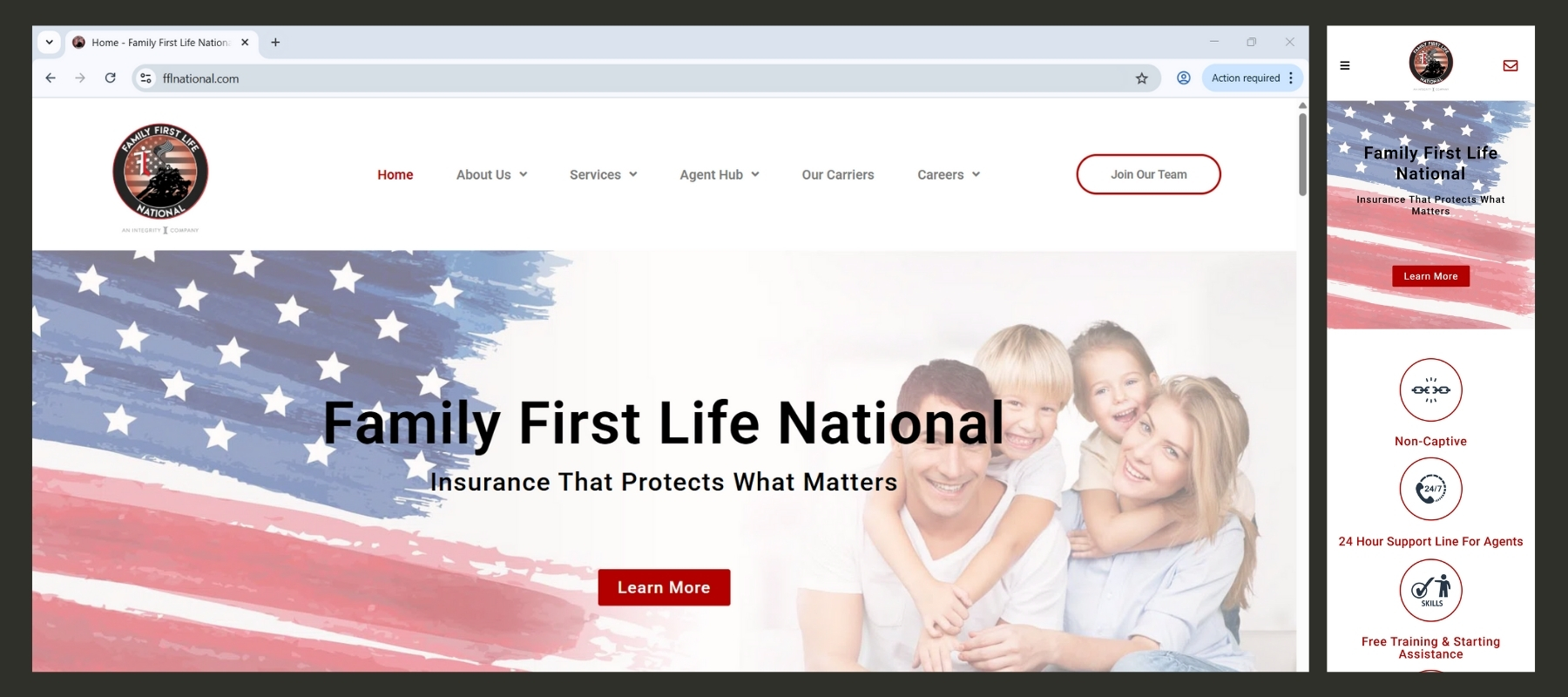 A 10+ page website for a national insurance agency providing affordable, customized coverage to help working families protect their financial future.