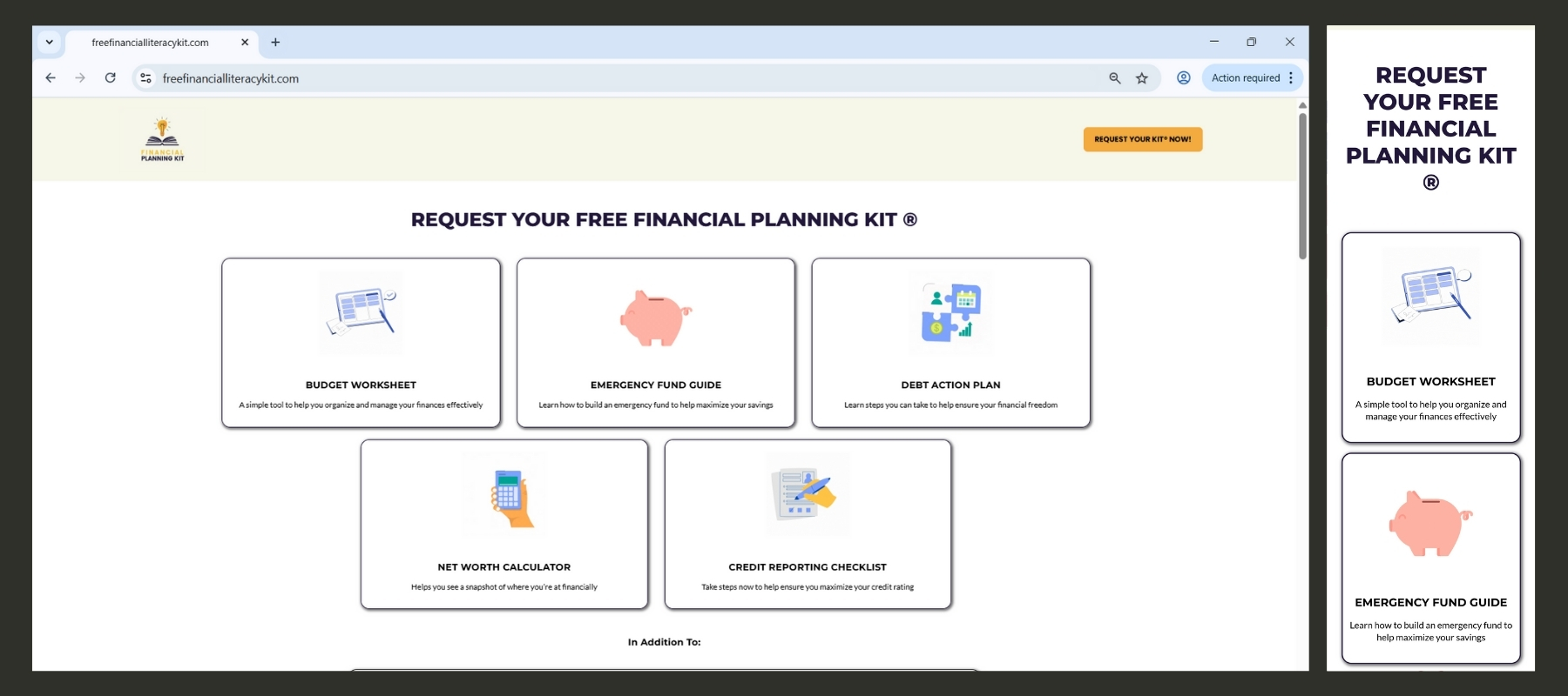 A one-page website that helps families take control of their finances with free tools for budgeting, saving, debt management, and insurance planning.