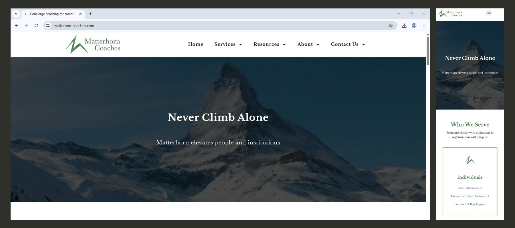 A 15+ page website that helps individuals and organizations reach new heights through personalized coaching, leadership development, and strategic growth.